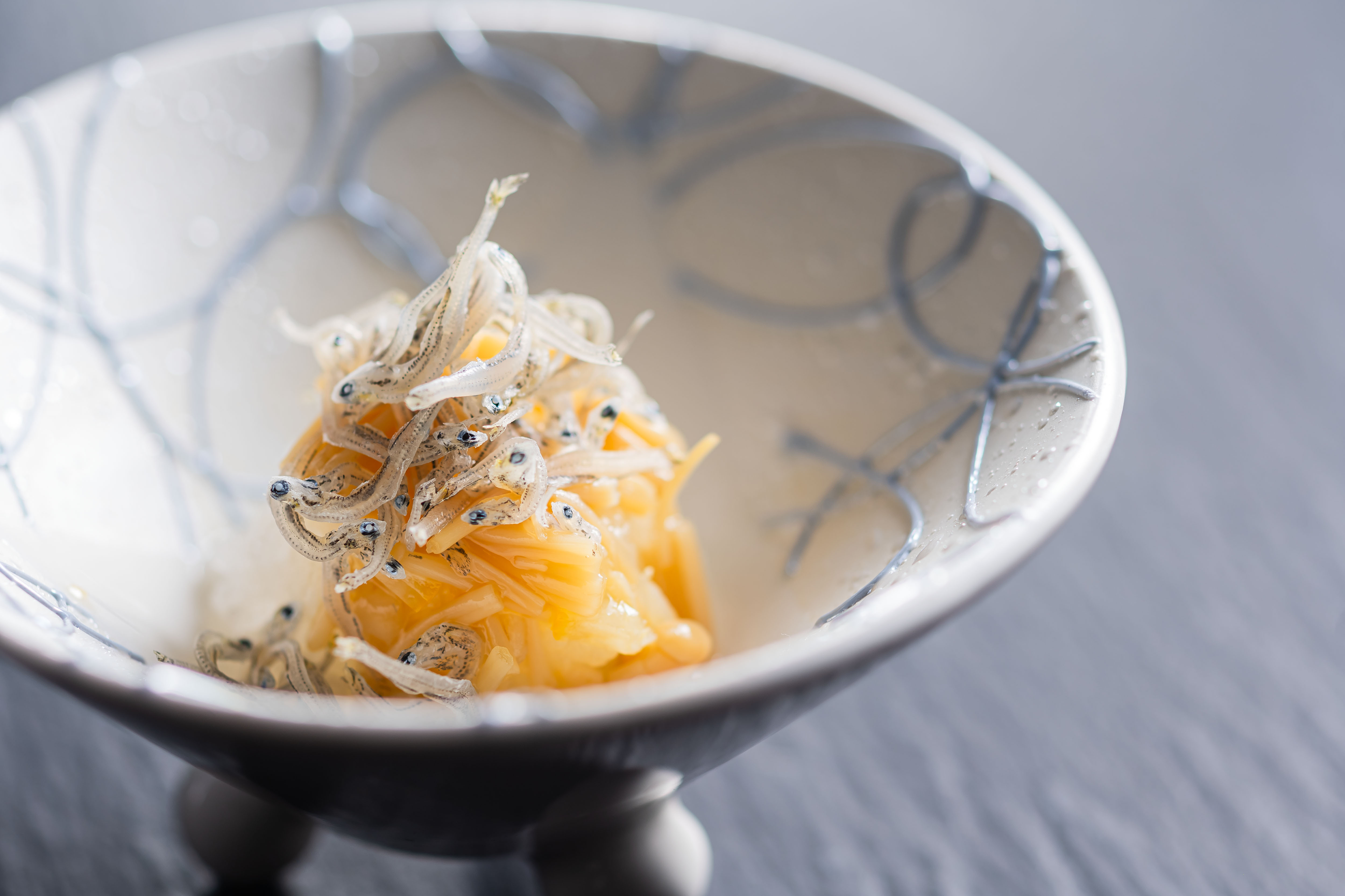 瀬戸の上乾ちりめんをレモンなめ茸を粗めに卸した大根おろしと共に。