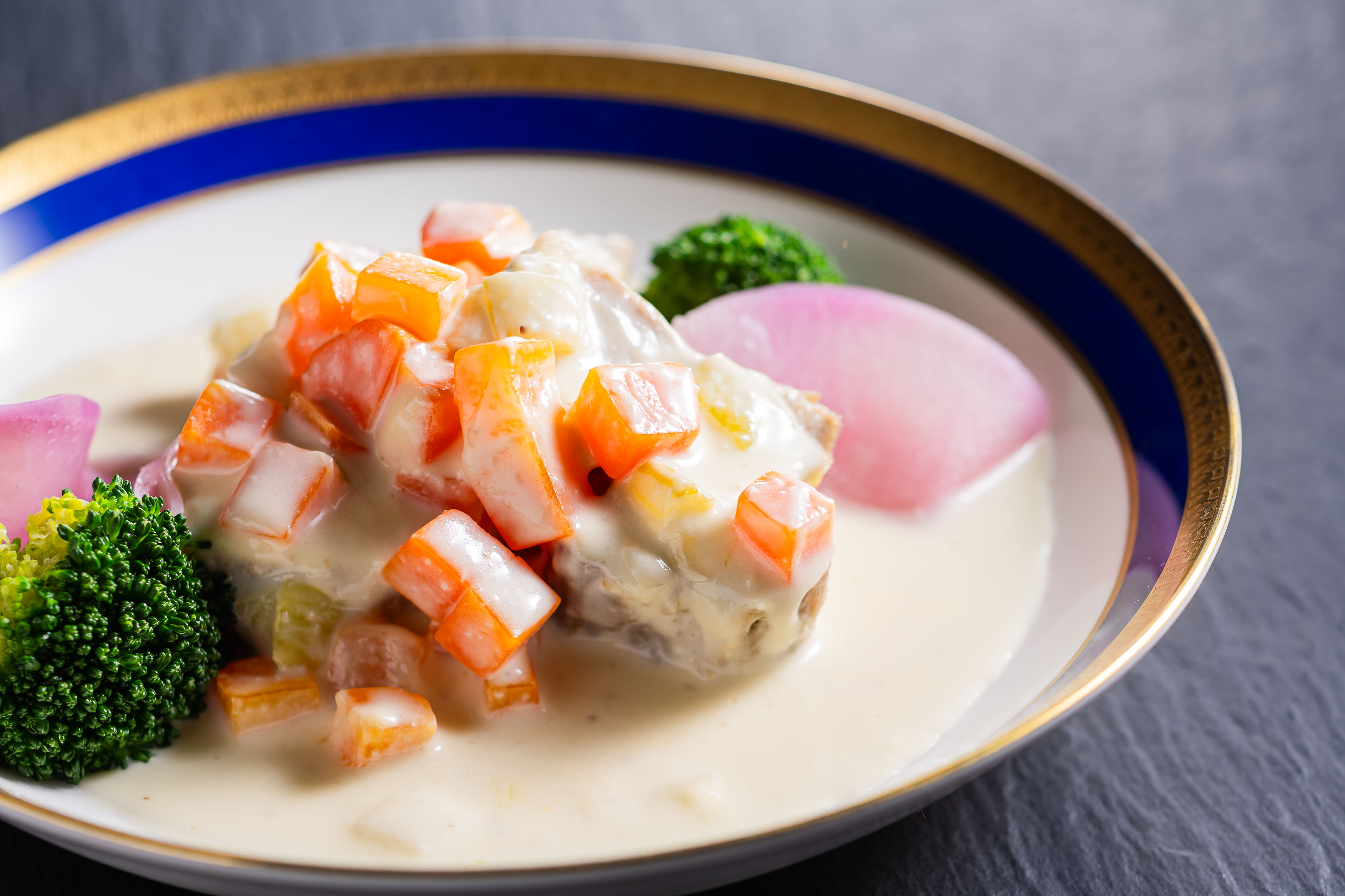 フランス家庭料理の定番。豚肩ロースをクリーム煮にした一品です。