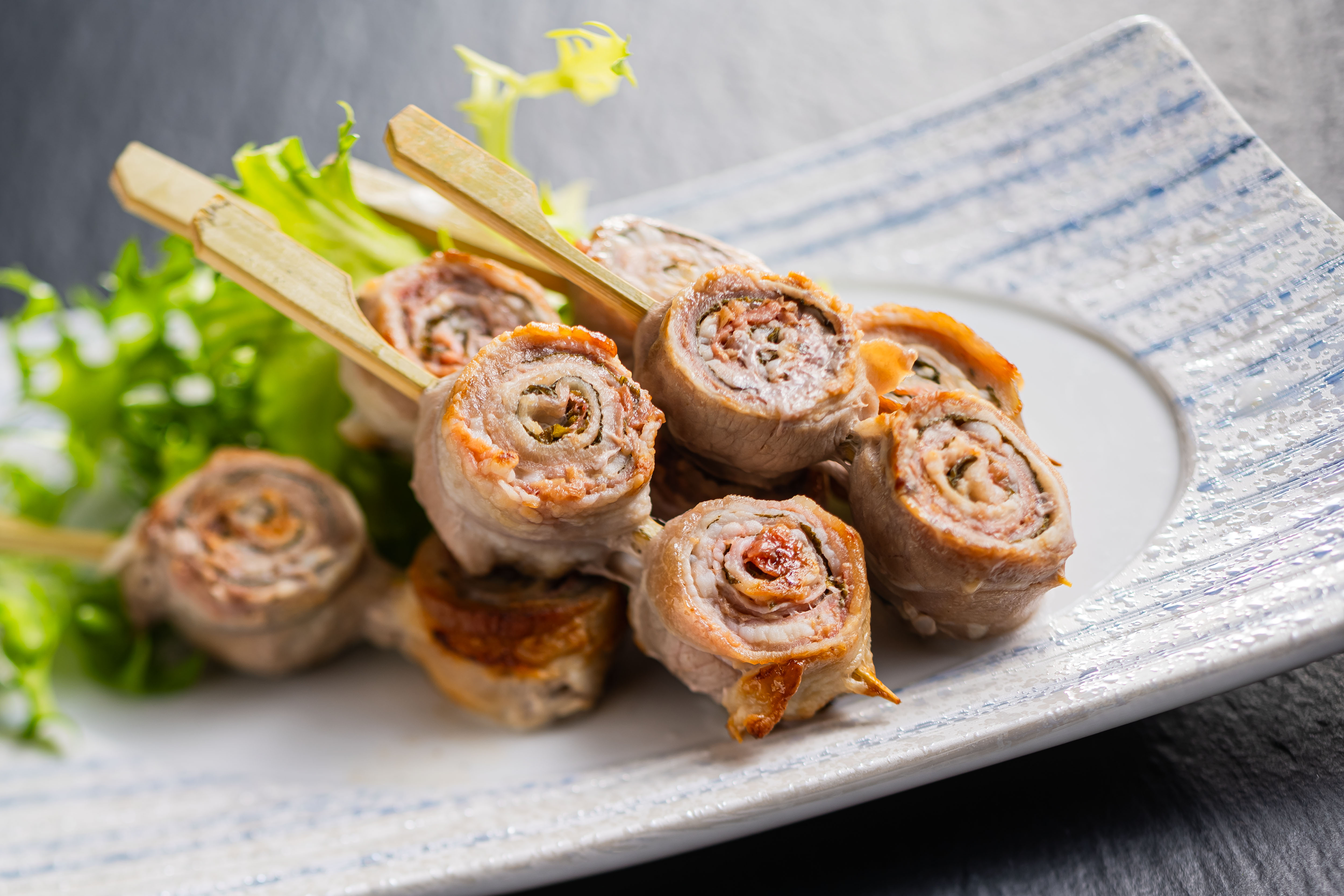 砥部町七折小梅と内子豚に紫蘇を使い、あっさり塩味に仕上げました。