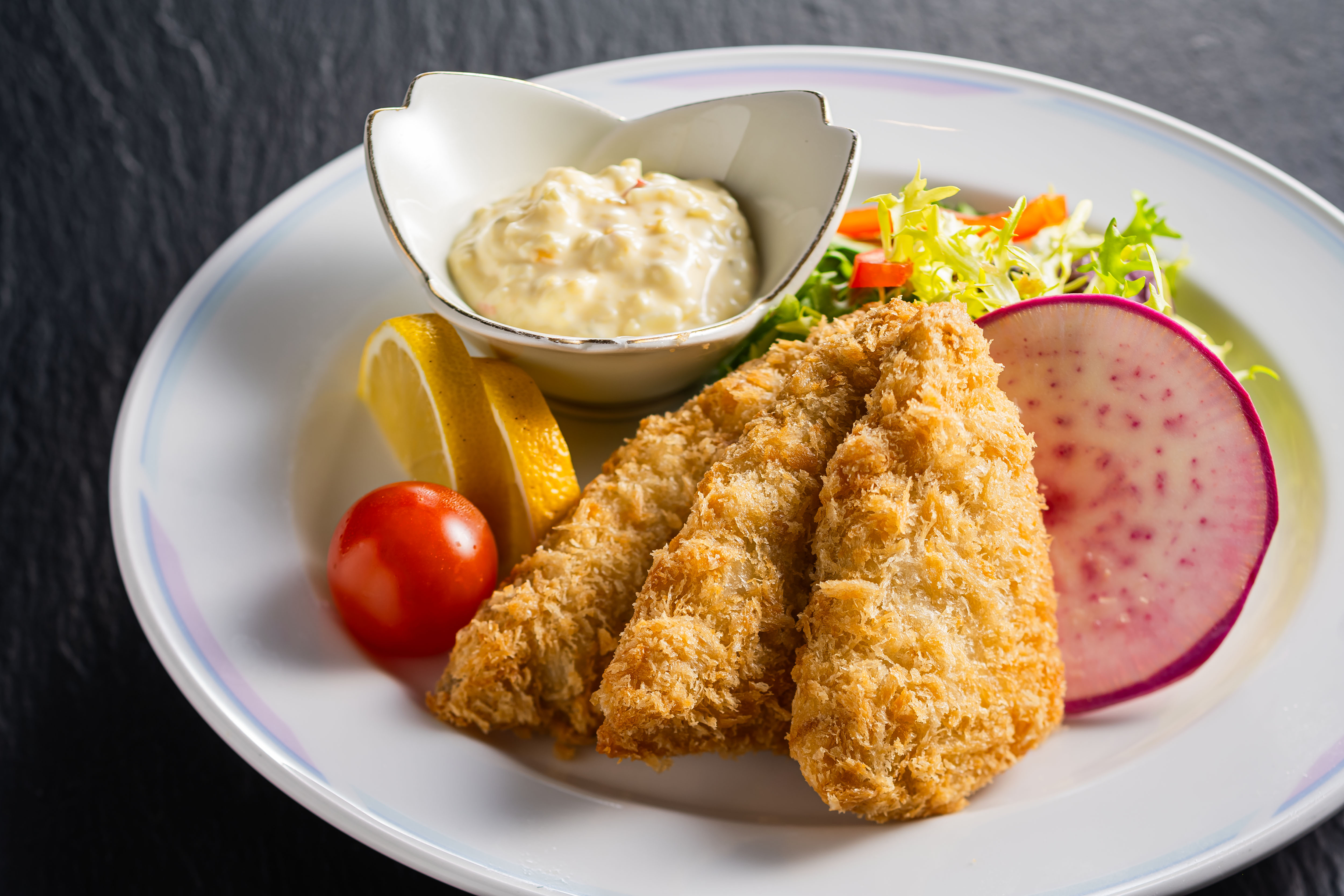 カリッと揚がったあじフライを瀬戸内檸檬を使った自家製タルタルソースをたっぷりかけご賞味ください。