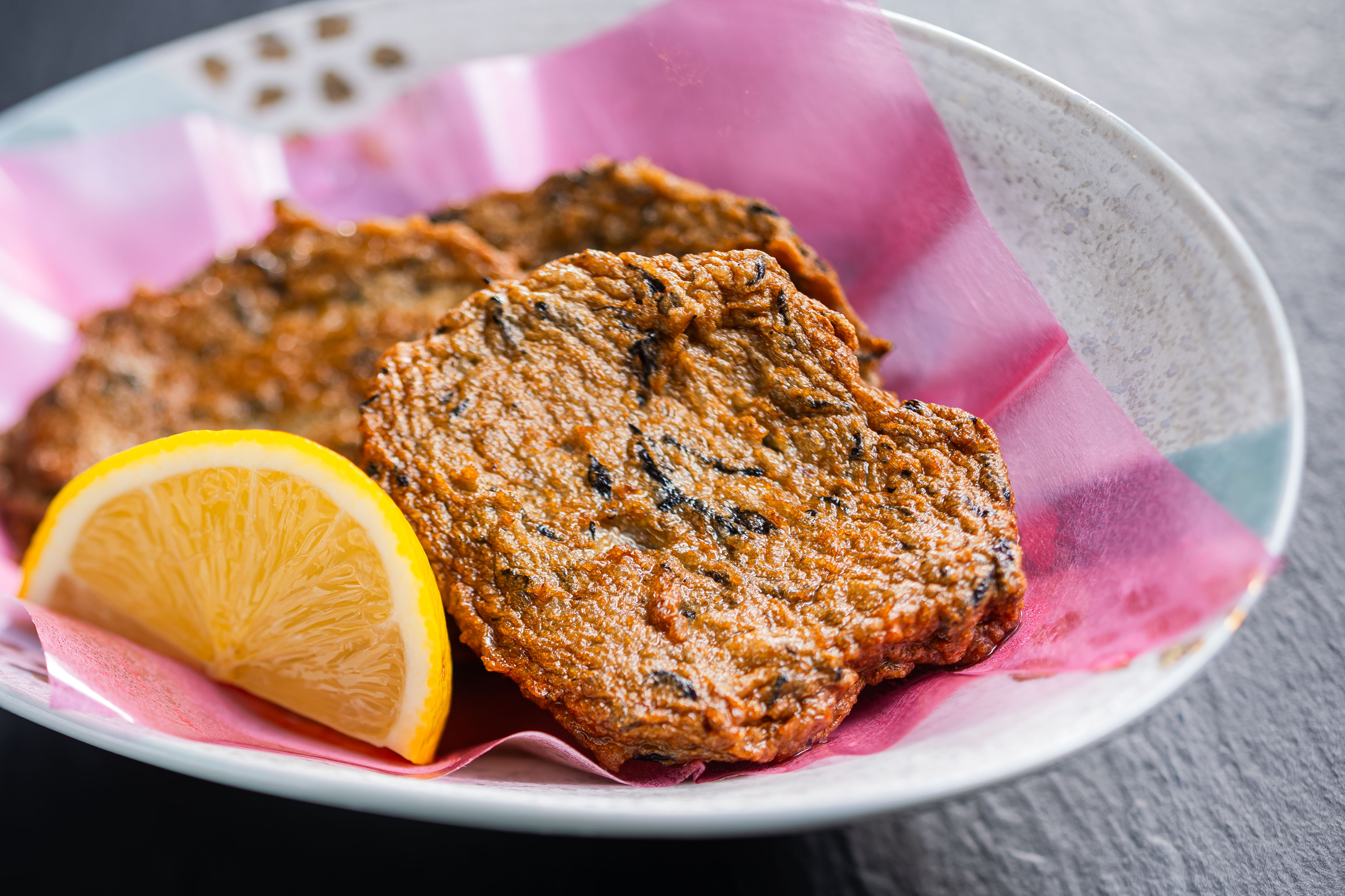 じゃこのすり身に、瀬戸内で捕れたひじきを混ぜ込んだ、遥オリジナルじゃこ天です。