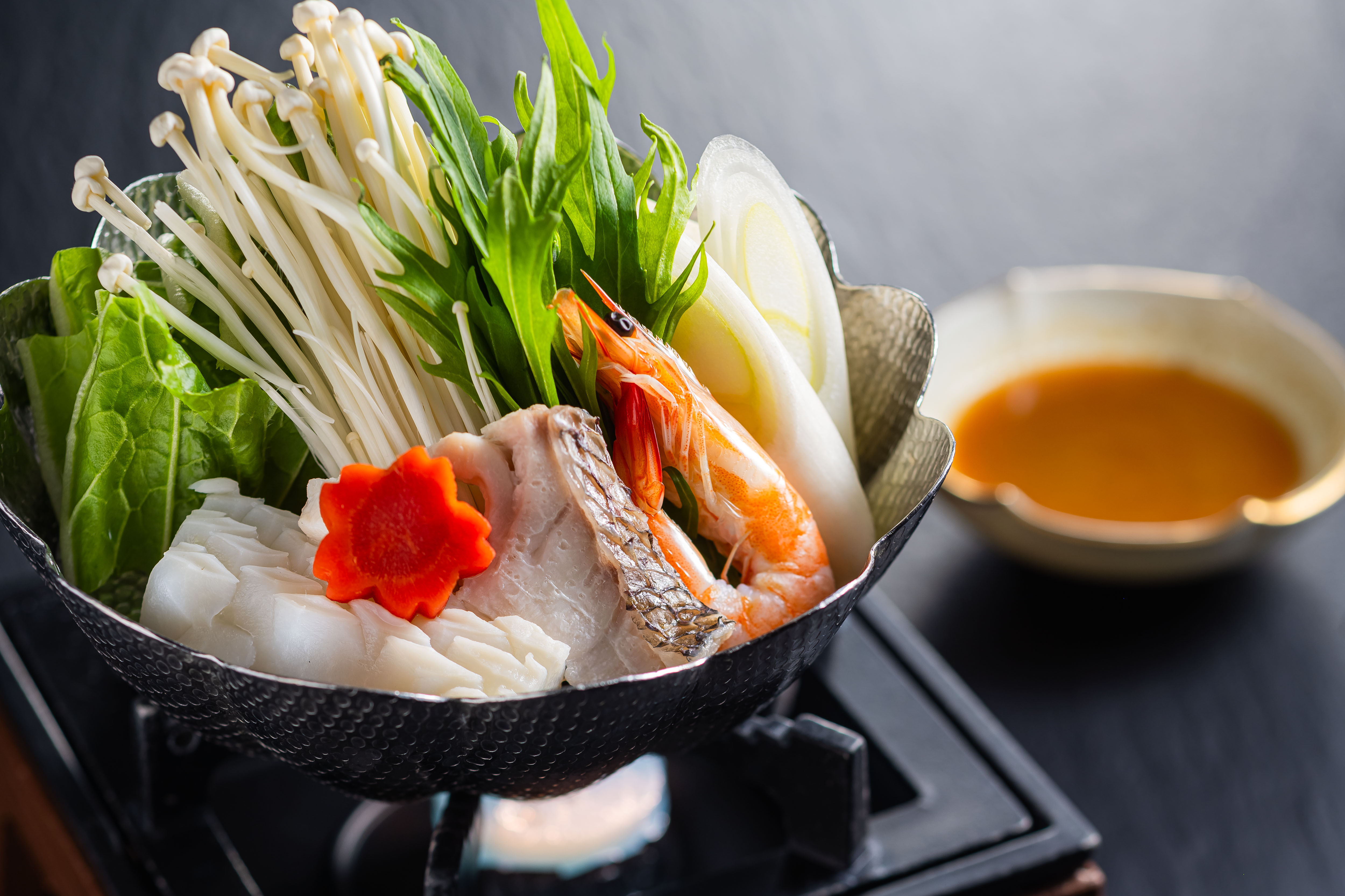 新鮮な魚介類や野菜を、揚げたてでご賞味ください。