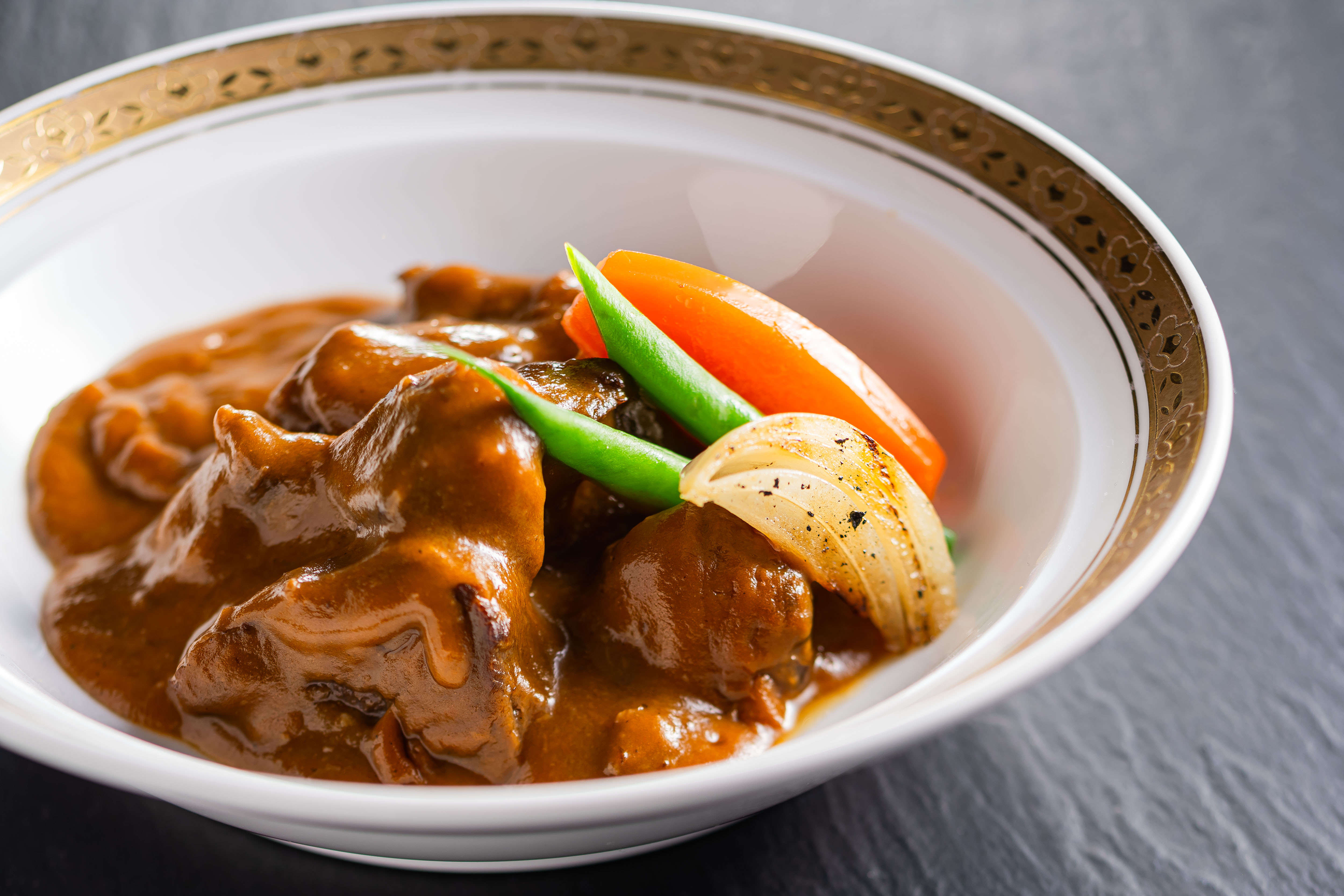 和牛の筋肉を柔らかく煮込みデミグラスソースで濃く深い味をお楽しみ下さい