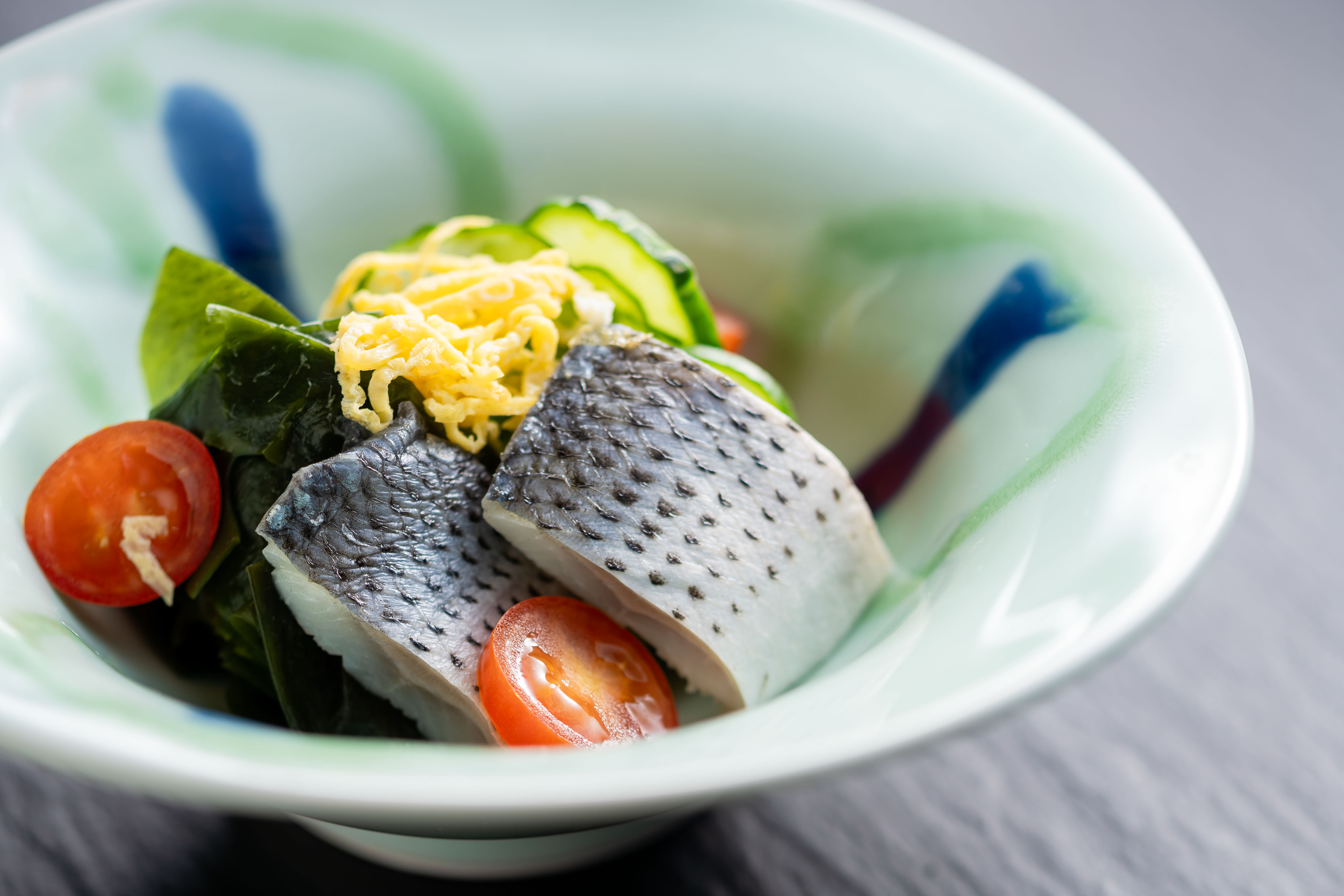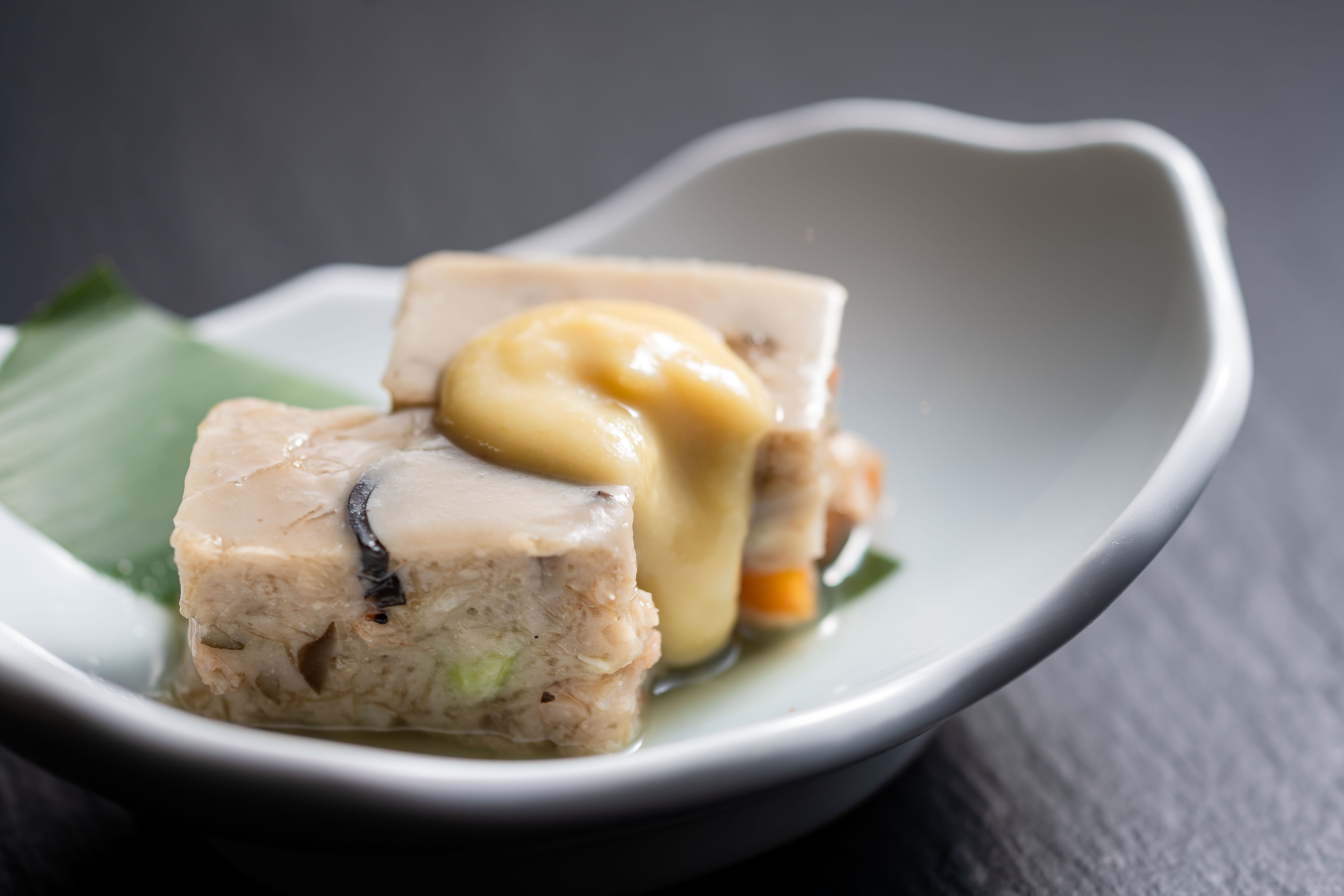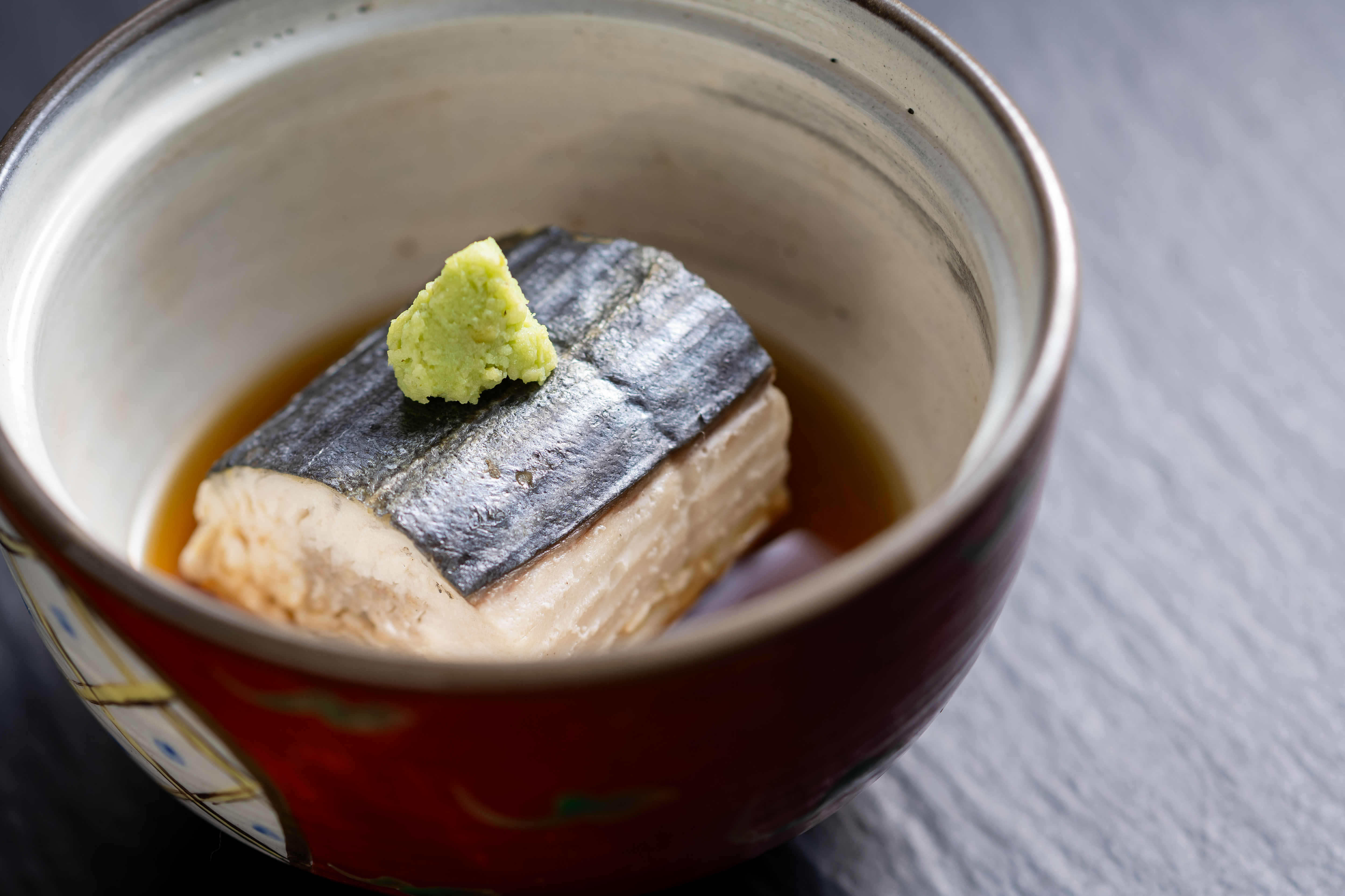 蕎麦を鰆で包んだ一品です。温かいお出汁をかけお召し上がりください。