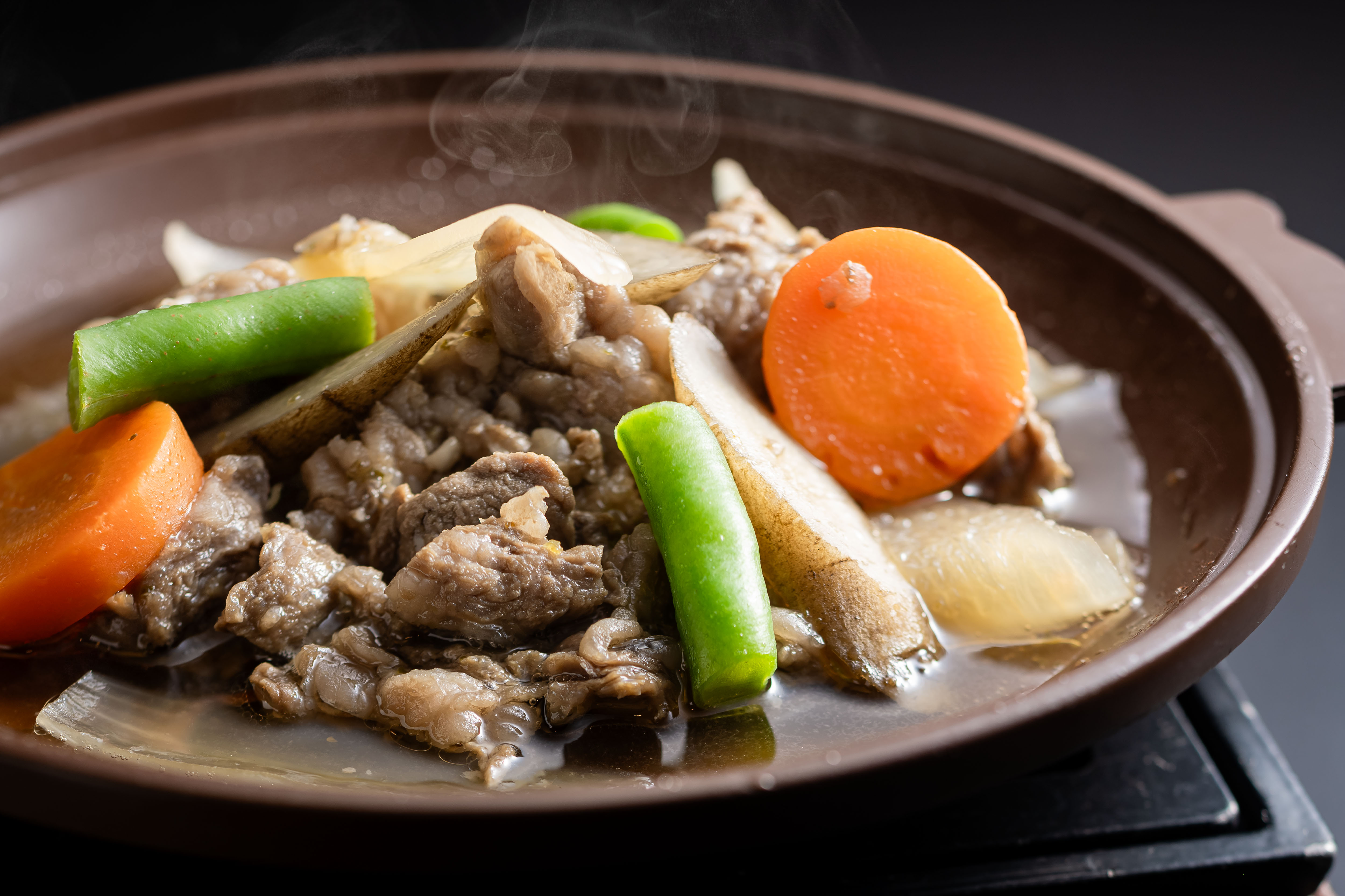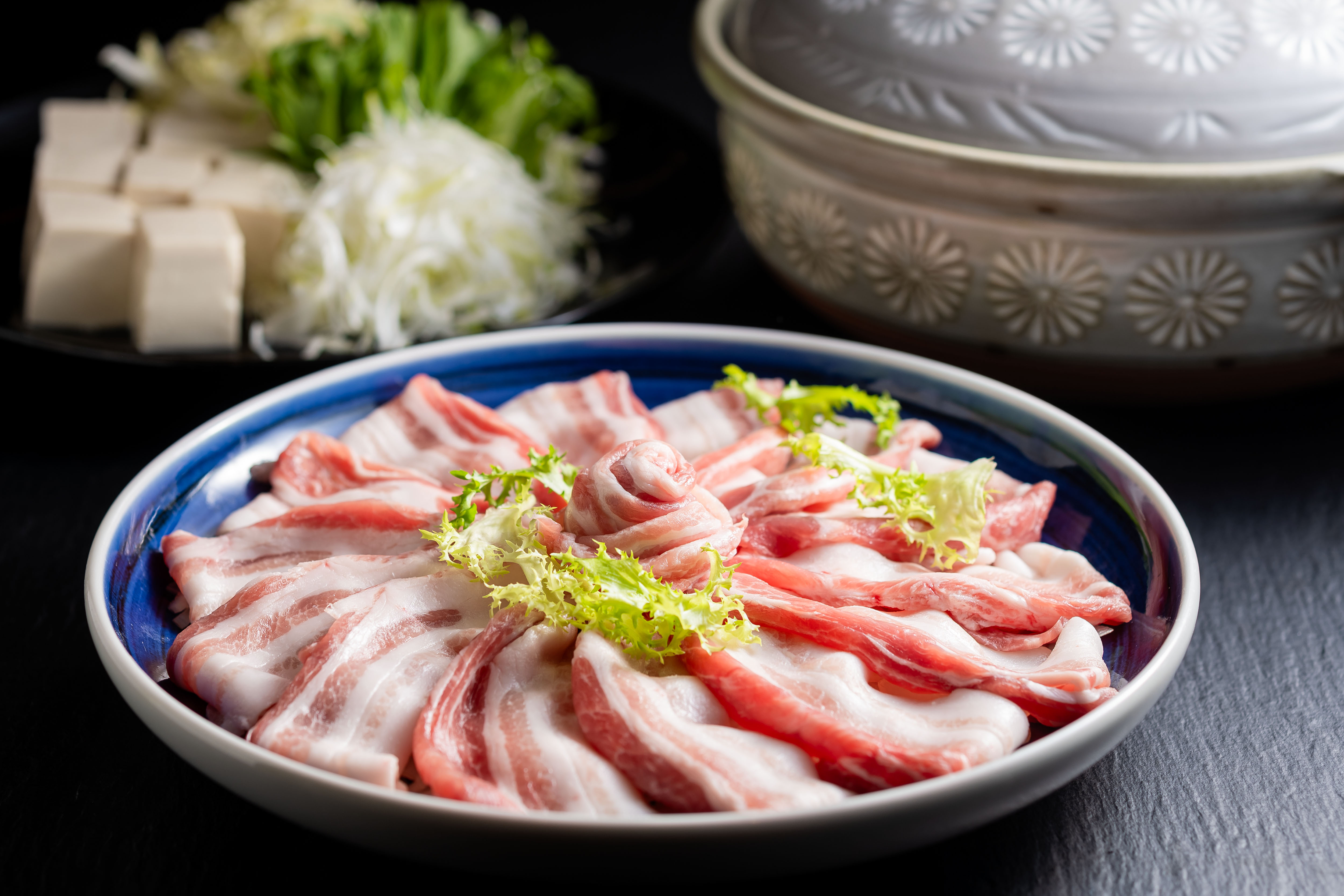杖ノ淵の湧水(弘法大師の故事由来)を使用した出汁で、愛媛県産ブランド内子豚と野菜をしゃぶしゃぶしてお召し上がりください。