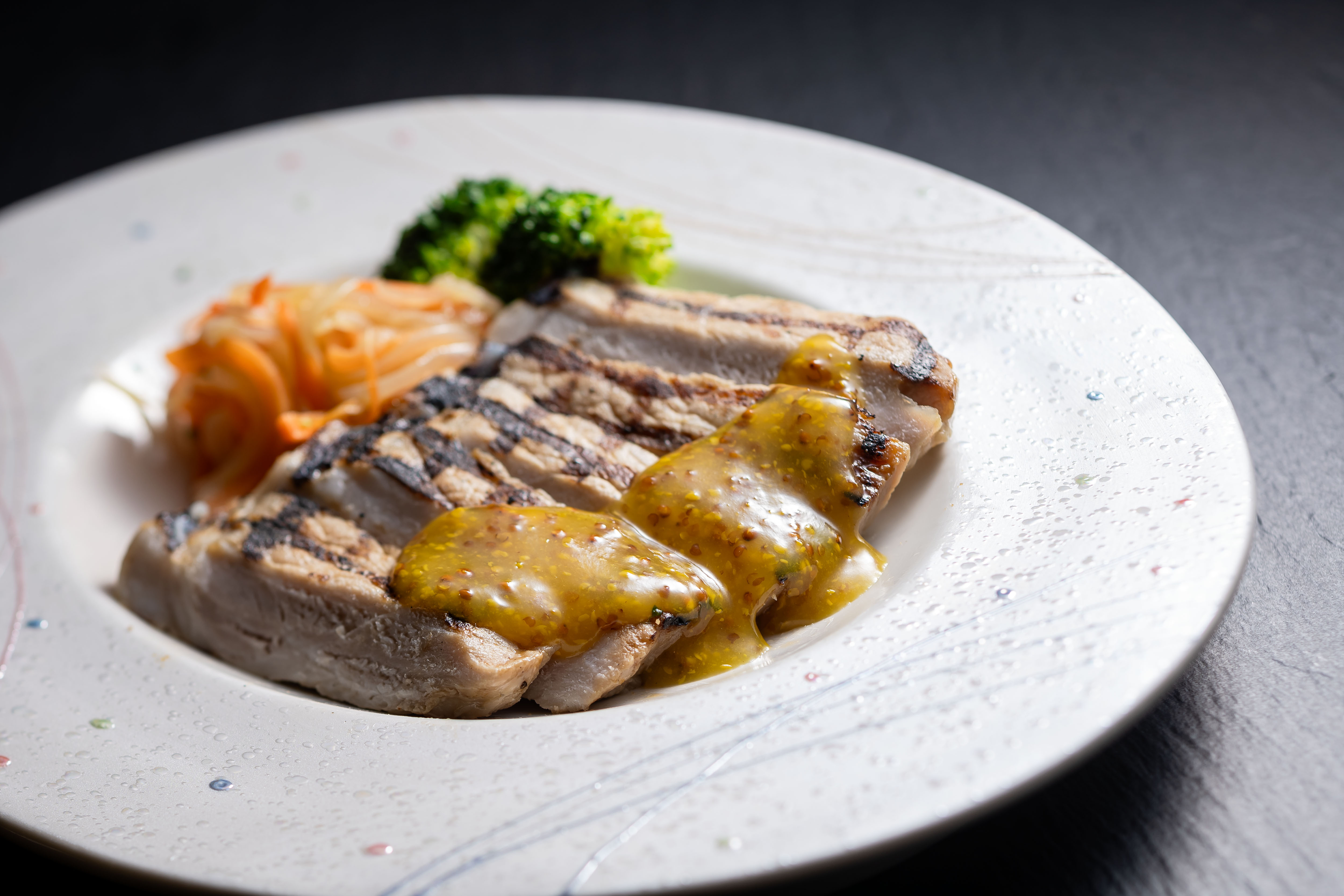 愛媛県を代表するブランド豚です。愛媛県裸麦を配合した専用飼料を食べて育った肉は、程よくサシが入りジューシーで脂身は甘くよい口どけ。
