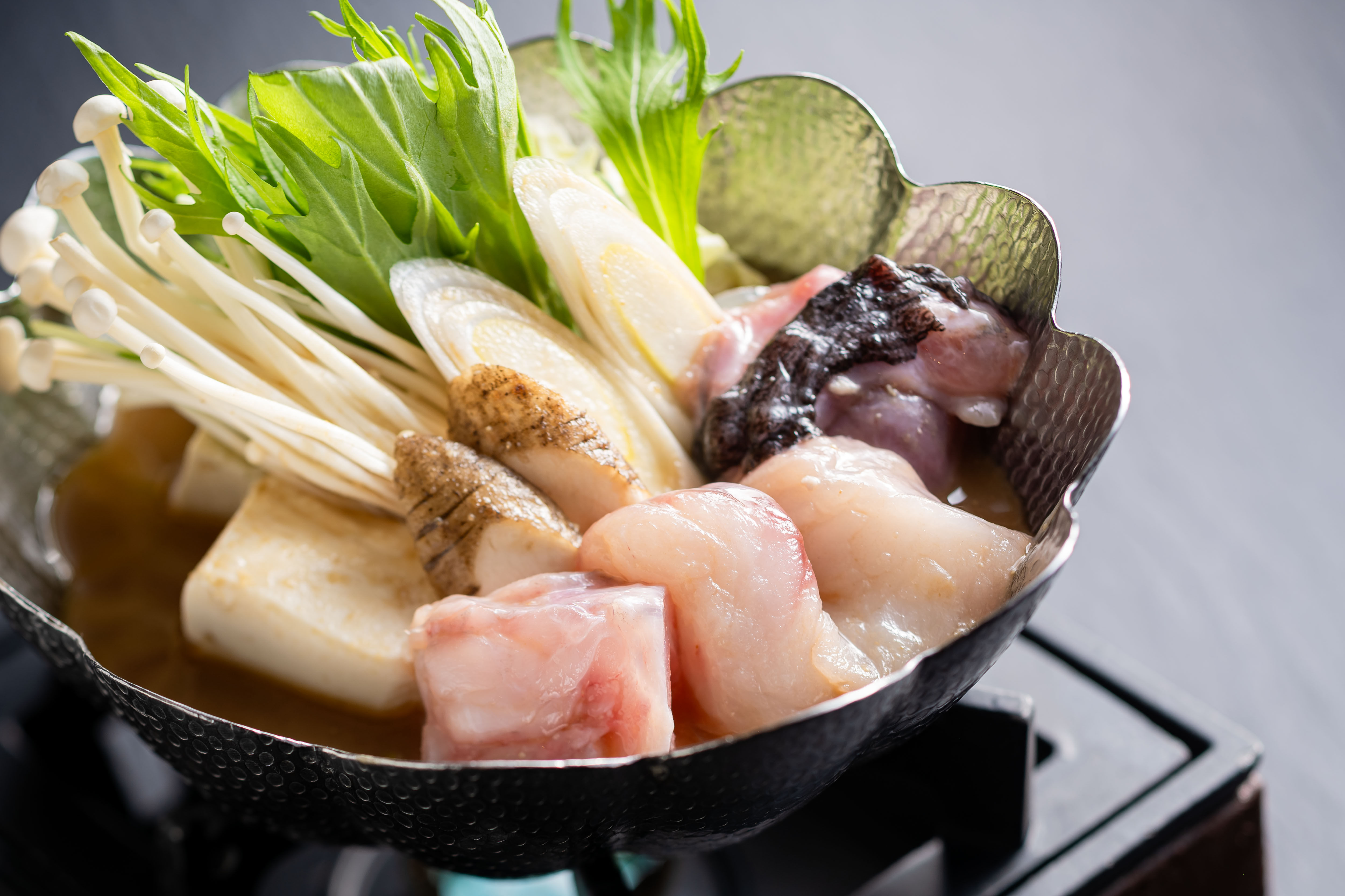 赤味噌と愛媛県産押し麦味噌を合わせ配合したお出汁で鮟鱇の柔らかい身をご賞味ください。
